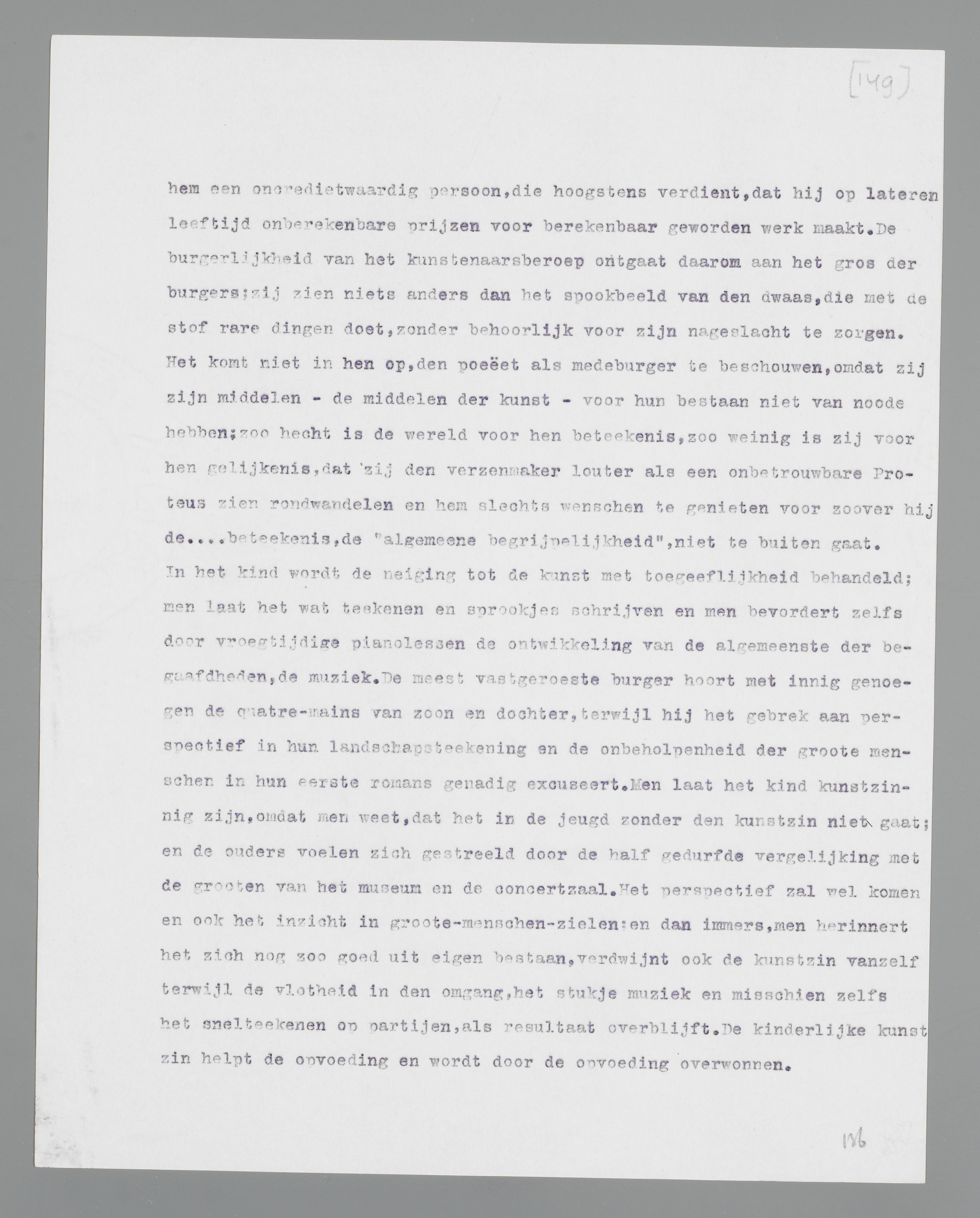 Het carnaval der burgers, manuscript, versie I