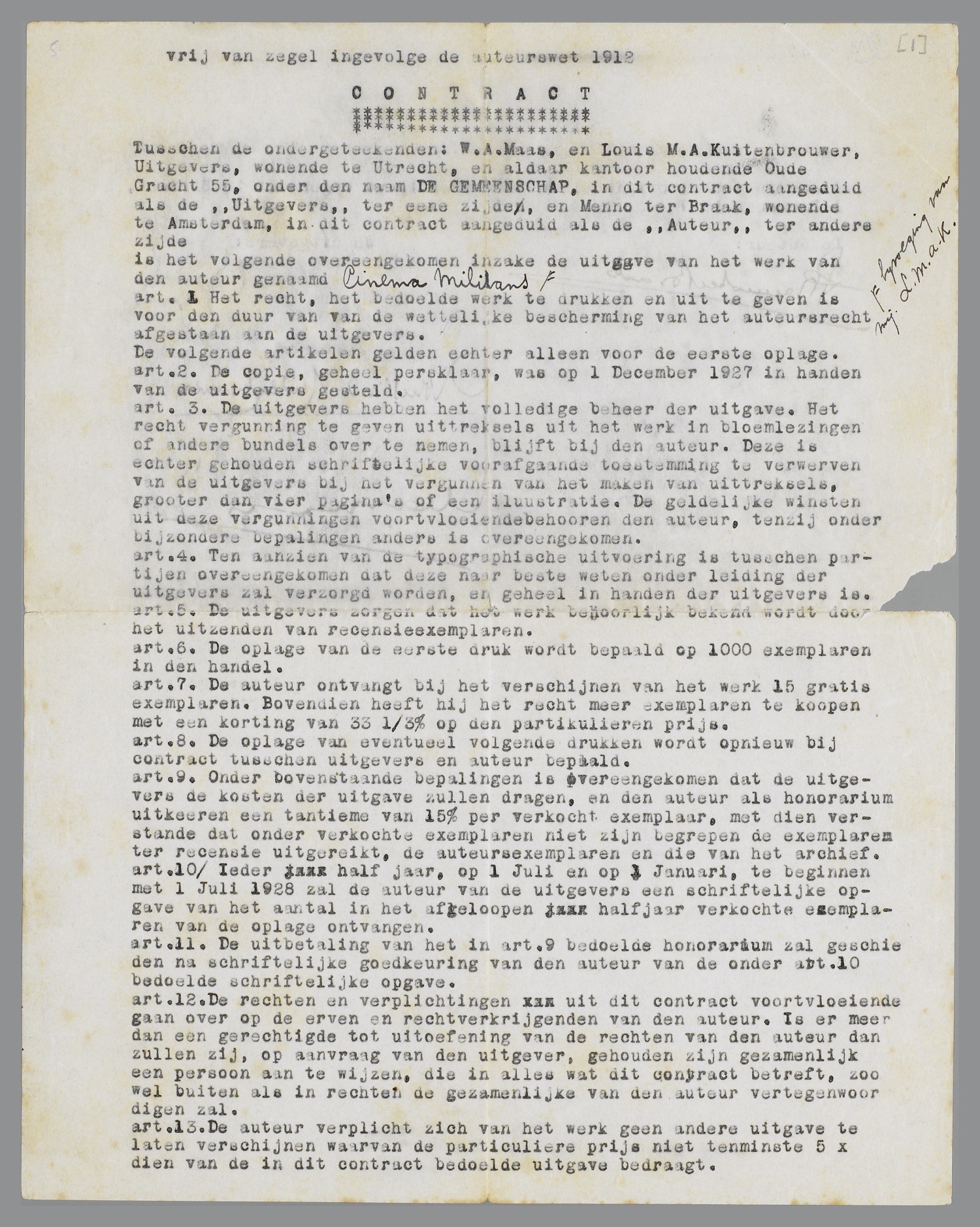 Manuscripten, typoscripten, drukproeven, opdrachtexemplaren en contracten