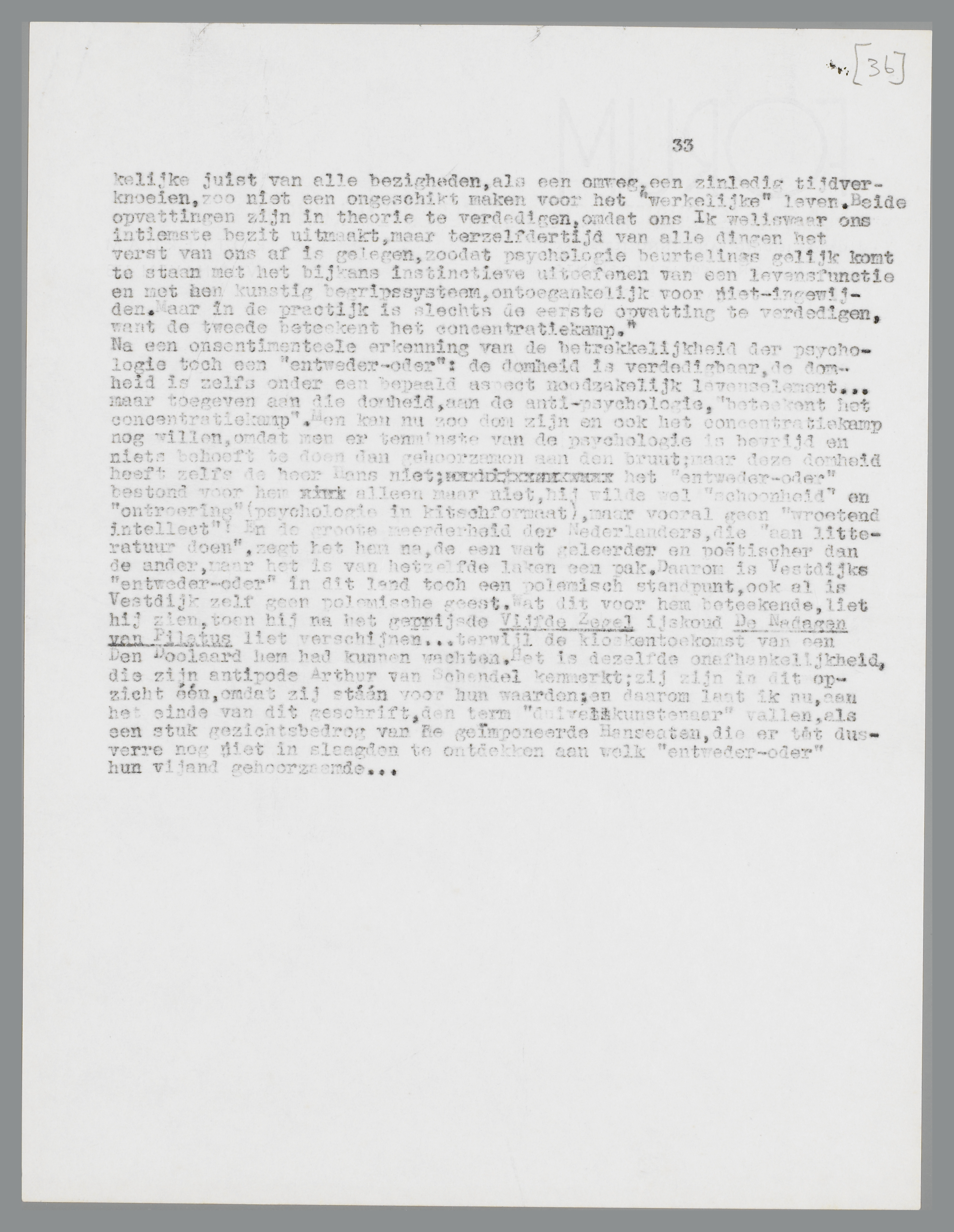 De duivelskunstenaar, typoscript, versie I