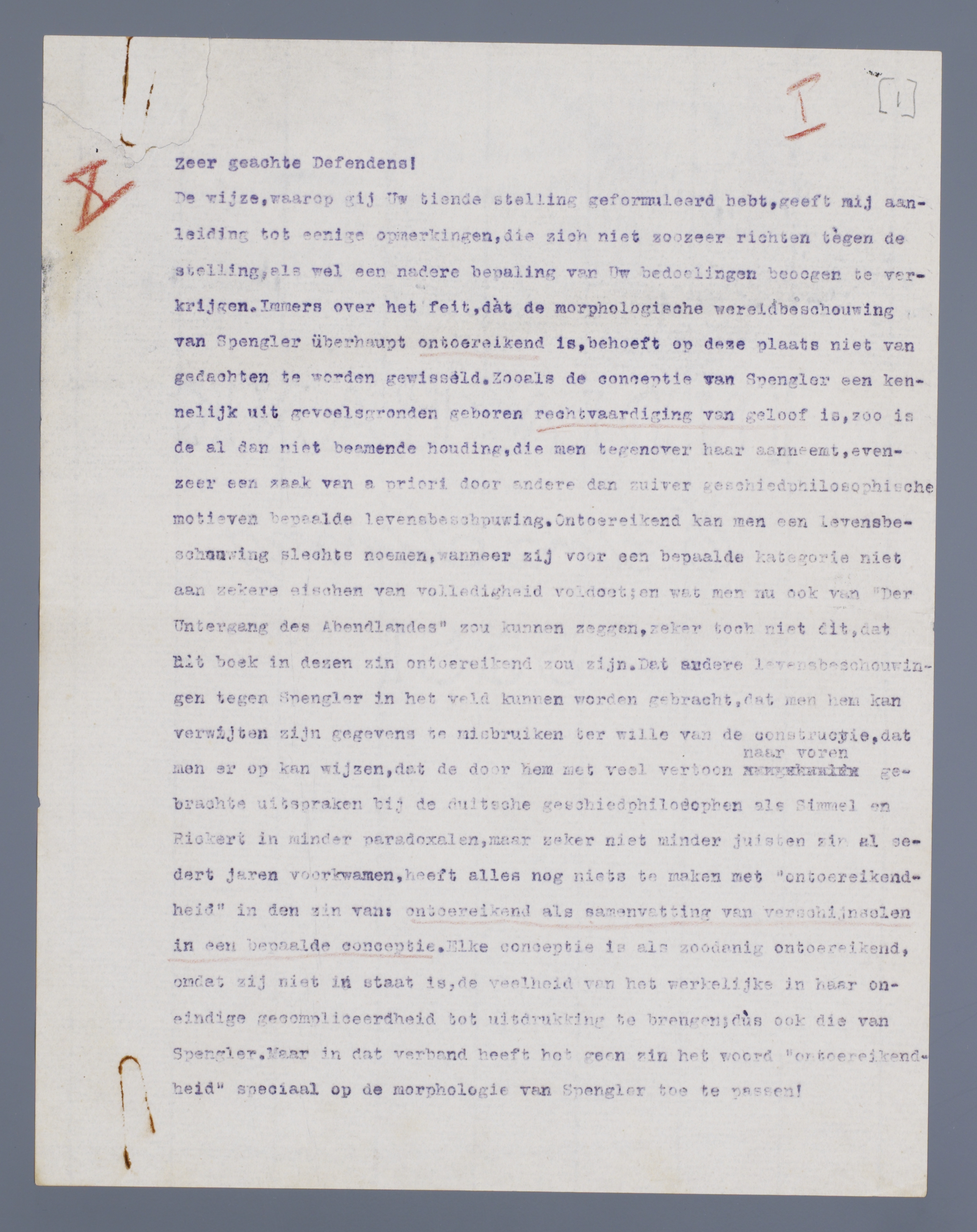 Betoog van opponens D.A.M. Binnendijk over stelling X van het proefschrift en het antwoord van Ter Braak. Betoog en antwoord werden door Ter Braak geschreven.