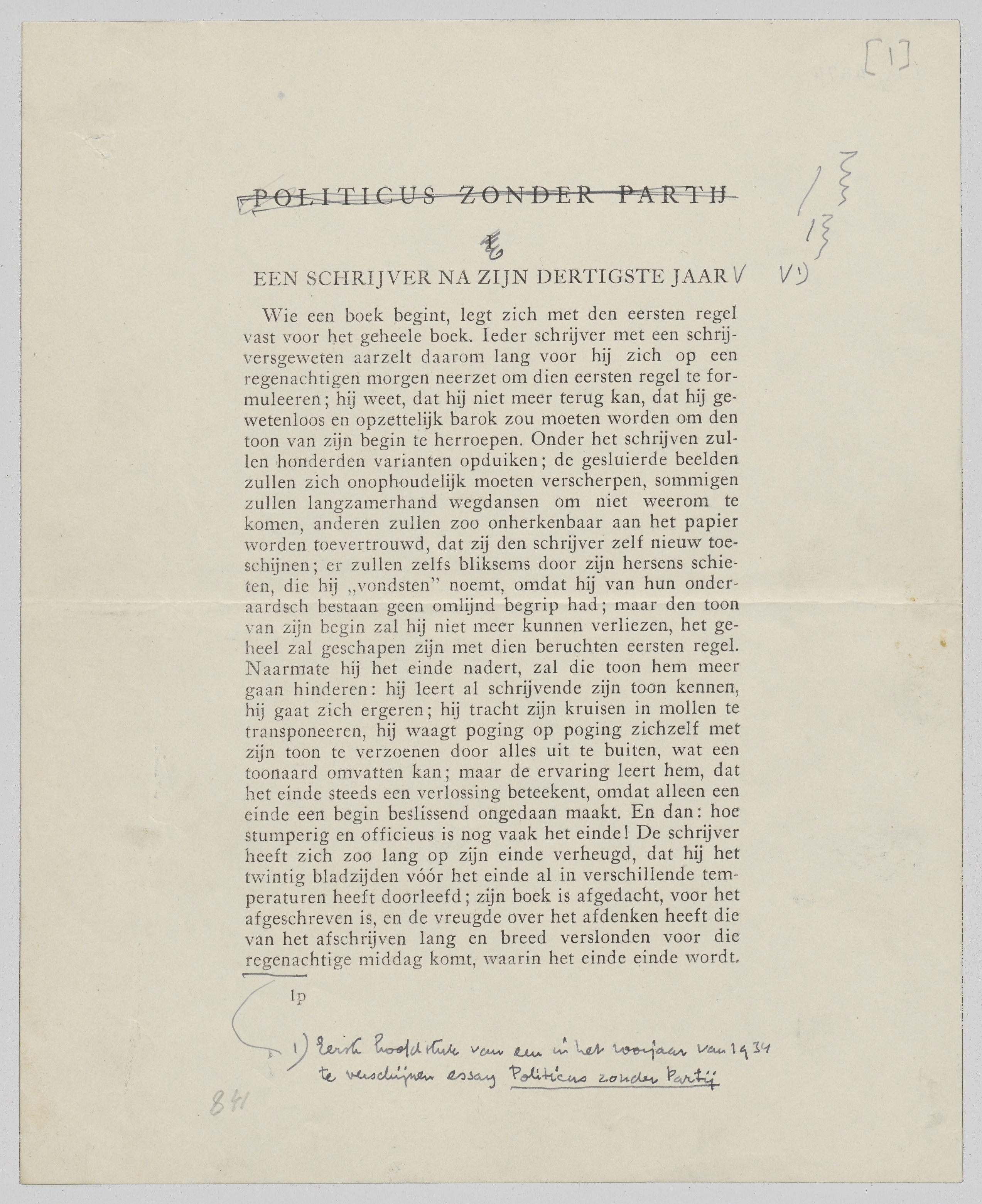 Manuscripten, typoscripten, drukproeven, opdrachtexemplaren en contracten
