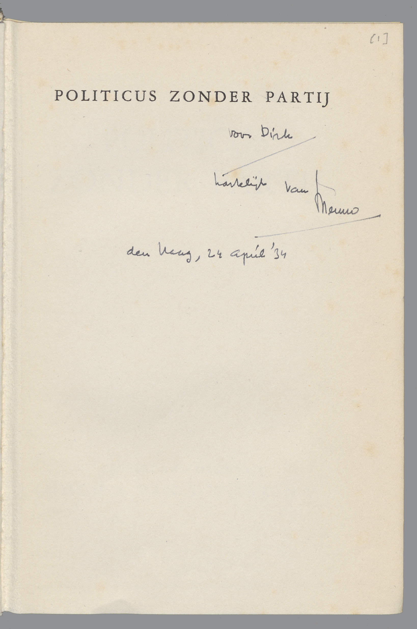 Politicus zonder partij, opdrachtexemplaren