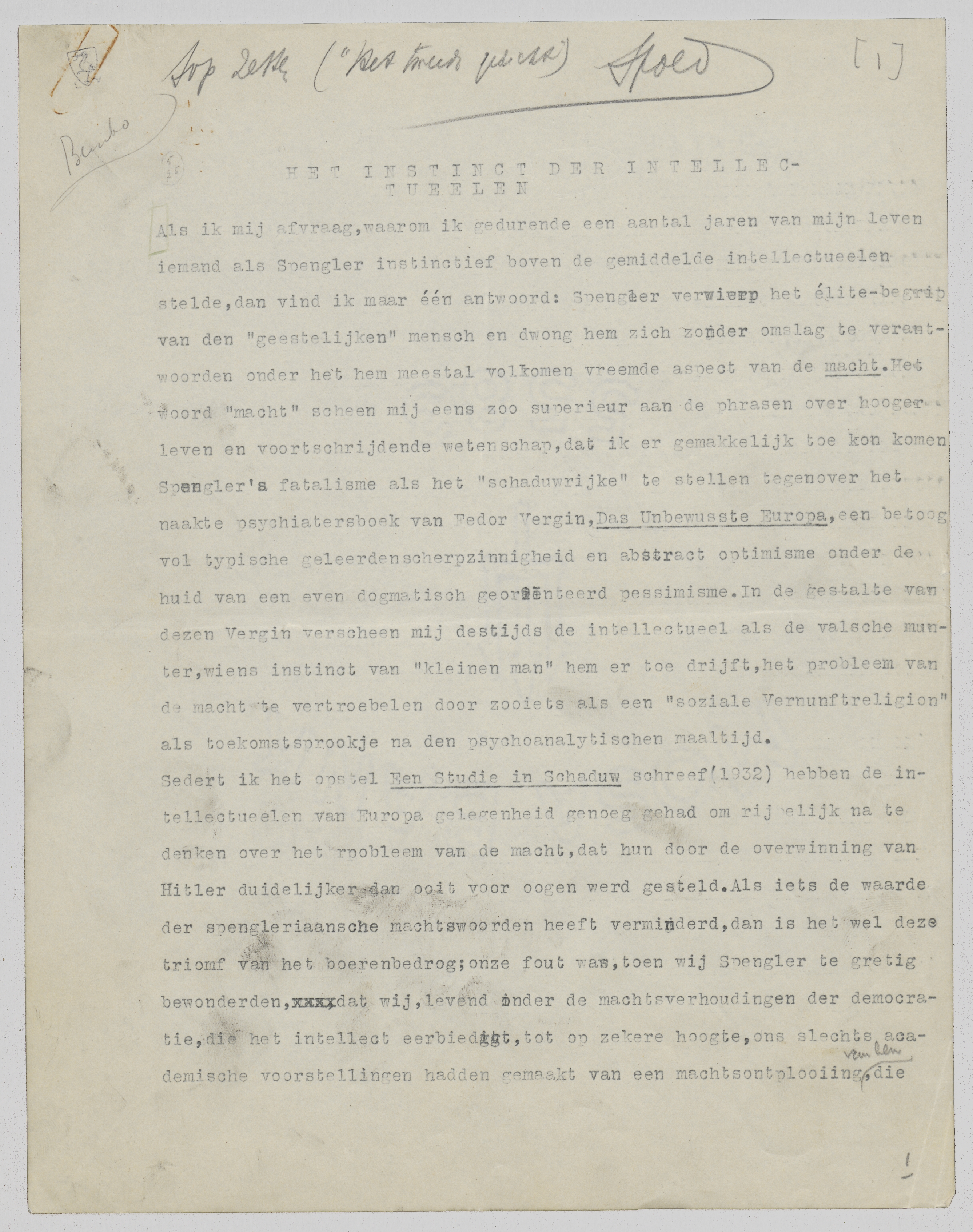 Het tweede gezicht, typoscript, Het instinct der intellectuelen