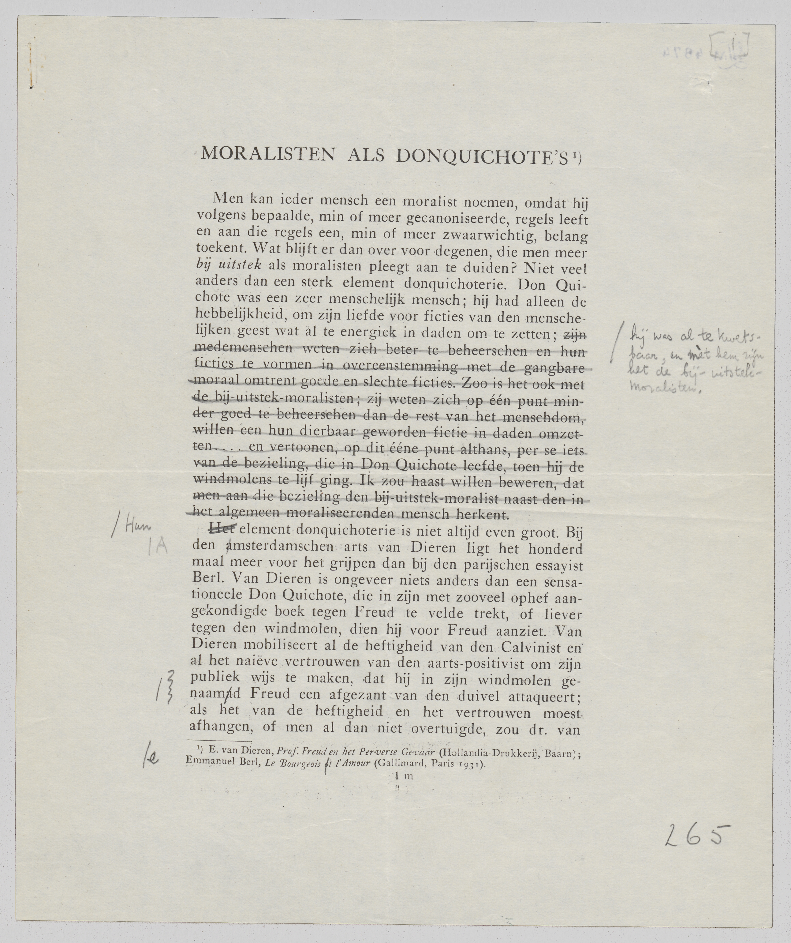 drukproeven met correcties van de delen: Moralisten als Don Quichote's, Eckermann-herdenking, Eckermann's Gespräche met Eckermann, Sancta simplicitas en Heldenvereering