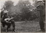 Vader, moeder en zittend op het gras zuster Tine en twee onbekende meisjes, 192?