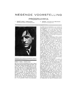 De tijd van het film-expressionisme telt in Robert Wiene haar belangrijksten vertegenwoordiger. Het is algemeen bekend, dat Wiene door zijn ‘Caligari’ film als eerste in Duitschland een doelbewuste styleering van het décor heeft ingevoerd, om langs dien weg de zelfstandigheid van het instrument film te bereiken. Dat die weg de verkeerde is, heeft de nazaat kunnen speuren; want de expressie van het doode décor is niet de expressie van het bewegende beeldvlak; de expressie van den schilder en den architect is niet die van den cineast. Men drukt geen gevoelens uit door de film, wanneer men een deur scheef zet of een gevaarlijk hellend huis construeert; de emotie van het beeldvlak sluipt tusschen de statische gegevens door en is in den samenhang der beelden te vinden. Zoo was Robert Wiene dus principieel niet op den juisten weg. Maar het is gemakkelijk dit achteraf te constateeren, en daarbij te vergeten, welk een ontzaglijke energie en idealistische durf noodig geweest zijn, om de eerste stappen te doen, die naar de autonomie van de film geleid hebben.