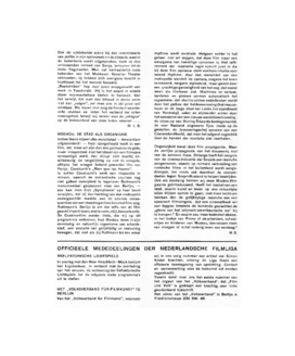 Ongetwijfeld bevat deze film propaganda. Maar de eerlijke propaganda van het document, niet van de schoone frase. Onlangs heeft het congres van de cinema-industrie der Sovjets een resolutie aangenomen, waarin op ruimere verbreiding van russische films in het buitenland wordt aangedrongen, ten einde ook daardoor de vooroordeelen tegen Sovjet-Rusland te helpen bestrijden. Ook als zoodanig hebben wij deze Moskou-film gaarne geïntroduceerd. Heeft het besluit van een land, waarin kunst en leven op zoo natuurlijke wijze blijken samen te gaan, niet meer recht van bestaan dan de gelijktijdige resolutie van een spaansch filmcongres, dat een cinematheek wil aan leggen, teneinde de komende geslachten de ‘glorie van het latijnsch-amerikaansche ras’ bij te brengen? En waarin zou meer toekomst steken: in het buikje van Primo of de arbeiders; schooiertjes en kinderen van Moskou, den voozen roem van morgen of is het nederig leven van vandaag?