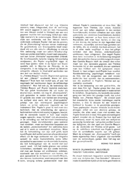 resoluut had afgewend van het z.g. litteraire scenario, maar, integendeel, door de verfilming (dit woord opgevat in den zin van: transpositie van een litterair motief in filmtaal) van een oud gegeven trachtte het voorloopig deficit aan redelijke scenario's te ondervangen. Bleek dit eenerzijds een verdienste, wat den inhoud betreft, anderzijds ontkwam Feyder niet aan de gevaren, die de ‘filmvertaling’ van een roman meebrengt. De geschiedenis van Crainquebille bleef inderdaad vrij van alle valsche effectbejag en ook als film eenvoudig; maar een zekere breedsprakigheid, een praten-met-foto's, moest vaak vergoeden, wat aan zuiver ‘filmische’ expressiviteit ontbrak. De beschouwende, lyrische neiging tot overdadig analyseeren, die Feyder ongetwijfeld eigen is, vond haar juisten vorm in de figuur van Crainquebille zelf, in Maurice de Féraudy; In de compositie, in de bijfiguren, schoot zij tekort en ontaardde dikwijls in illustratief aanduiden van den text van Anatole France.