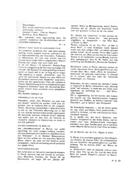 In de Int. Revue i 10 behandelt Moholy-Nagy thans het vraagstuk op de hem eigen grondige manier (afl. 15). Hij eischt de belangstelling der avantgarde en tracht zelf in de richting van de mogelijke oplossing te wijzen. ‘Zweifellos’, zegt hij, ‘wird die kommende Saison uns eine Reihe von Greueltaten kommerzieler Raubritter bescheren, indem sie den sprechenden Film als subalterne Theater-Nachahmung (mitverschiedensprachigen Ausgaben) herstellen lässt. Die Neuheit der Sensation sichert ihnen zunächst einen pekuniären Erfolg’.