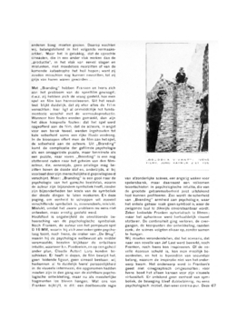 tweeheid werd noodlottig. Het spelersmateriaal werd dikwijls anders gebruikt dan de natuur, zonder dat dit anders-zijn verantwoord was door de bijzondere waarde van den acteur. Er was, nogmaals, geen cineast voor deze film; er was een cineast voor een rhytmische zee- of kermisétude (Ivens) en een regisseur, die begrip had van film in het algemeen (Franken); maar the right man on the right place ontbrak, de man, die het psychologisch verband had moeten vinden. Ziehier eenige oorzaken van een mislukking, die voortkwam uit een tweeheid van ernstige regie en toegewijde opname, in den meest absoluten ‘filmischen’ zin. Want deze tweeheid werd geen harmonie; de schuld was hier echter niet het commercieele aanlengen van den wijn, maar het steken-blijven in het probleem. Dàt verschil in veelzeggend genoeg.