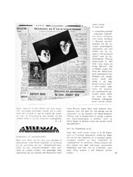 In afwachting van een volgenden reisbrief van onzen redacteur Joris ivens, die thans in Georgië vertoeft, plaatsen wij als curiosum nevenstaande reproductie van een artikel, dat hij onlangs in het weekblad ‘Kino’ over de Nederlandsche Filmliga publiceerde. In den inzet Joris Ivens en Dziga Wertoff. Dat inmiddels vrijwel alle films der Nederlandsche avantgarde voor Rusland zijn aangekocht, heeft men reeds in de dagbladen kunnen lezen. In alle steden, waar Ivens tot dusverre zijn voordrachten gehouden heeft, heeft het werk der Hollandsche avantgarde groot succes gehad.