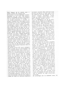 De activiteit van het H.B., waarin ondergeteekende geruimen tijd zijn werkzaamheden aan zijn medebestuursleden moest overlaten, bepaalde zich in de eerste plaats tot de verzorging der vier centrale programma's, waarvan de inhoud slechts zeer ten deele kon overeenkomen met de beloften, welke het Centraal Bureau voor Liga-films aan het begin van het vereenigingsjaar meende te kunnen geven. Russische films konden in het geheel niet worden vertoond, totdat vlak na het slotprogramma, De Uitkijk het bericht publiceerde, dat het voor zijn openbare vertooning een serie Russische films had weten te reserveeren. Tegelijkertijd publiceerde dit theater het bericht, dat in September a.s. de Heer Dziga Dwertoff voor de première van een zijner films in dat theater zou spreken, waardoor een aanbod, door den heer Dwertoff vele weken later aan de Nederlandsche Liga gedaan, waardeloos werd, hetgeen het H.B. betreurde, daar juist een dergelijke filmlezing in de lijn van hare vier jaren lang gevolgde exploitatie had gelegen en stellig het niveau der vertoonde programma's had kunnen releveeren. Maar andermaal vraagt het H.B. zich daarvoor af, welke reden er aan het continueeren der Liga verbonden kan zijn, wanneer dergelijke aanbiedingen zooveel vroeger aan publieke theaters gedaan en door dezen (uiteraard) aanvaard worden?