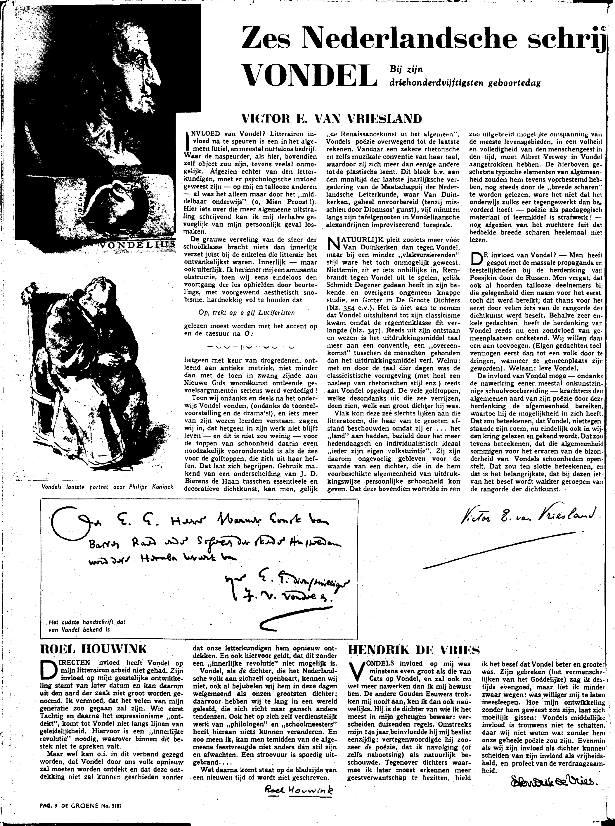 Zes Nederlandsche schrijvers en dichters over Vondel
