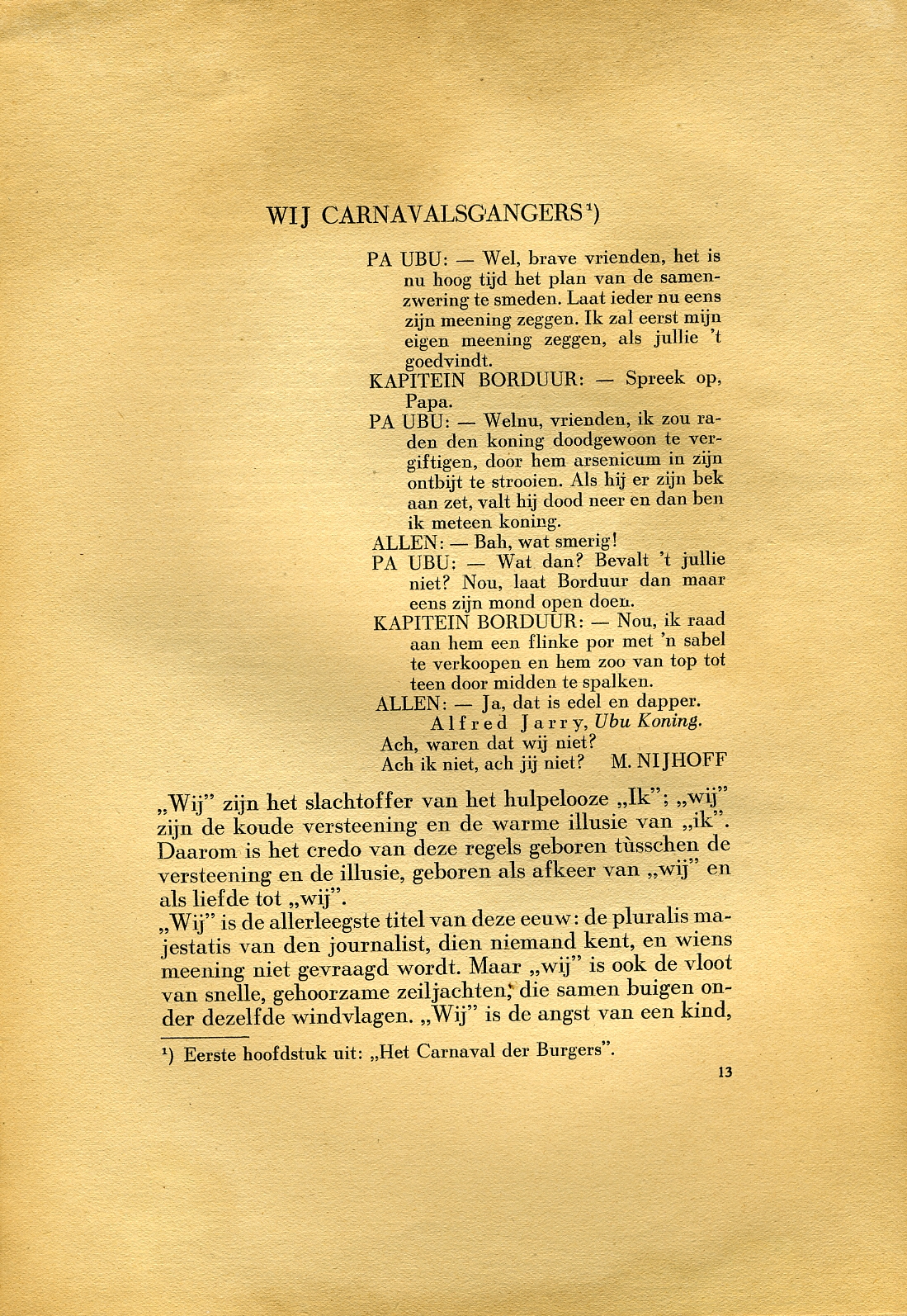Wij Carnavalsgangers, Eerste hoofdstuk uit het