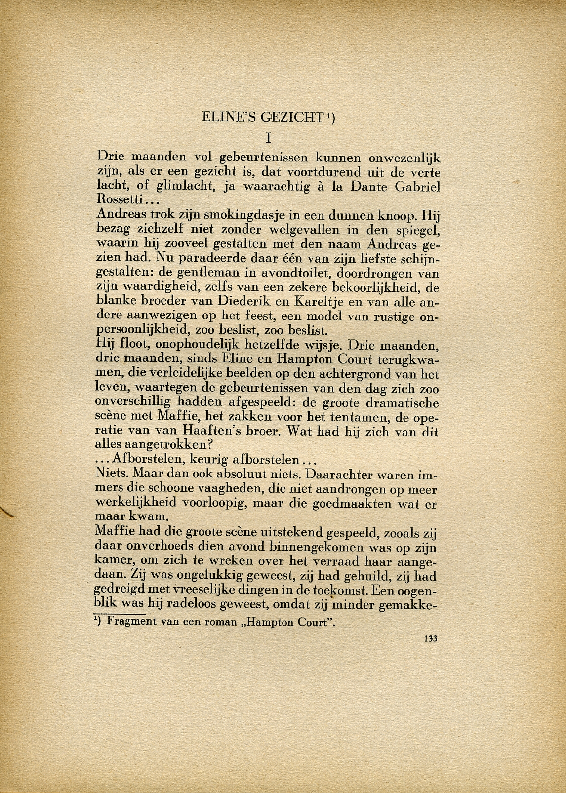 Eline's gezicht I, fragment van een roman