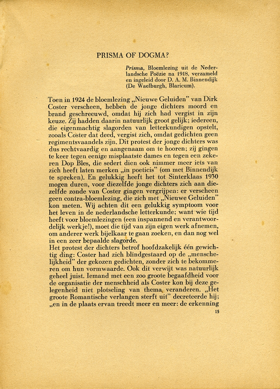 Prisma, Bloemlezing uit de Nederlandsche Poëzie na 1918