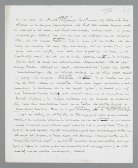 Het woord neerschrijven is, theoretisch, het woord dooden als gevoelsexpressie. De ‘magie van het woord’ is geen absolute waarde, die de dichter aan zijn creatie verleent, maar een min of meer toevallige betrekking tusschen de woordorde van den scheppenden en het woordgevoel van den passieven mensch. Alleen voor den dichter zelf is die ‘magie’ de volkomen adaequate uitdrukking van een woordgevoel; zoodra hij het woord loslaat in het symbolische teeken, geeft hij de volledige ‘magie’ prijs... Daarom is het verklaarbaar, dat aan enkele eenzamen het verlangen naar een narcissische zelfspiegeling in het woord zich heeft opgedrongen; dit eenzelvige, voor verstaanbaarheid onverschillige verkeer met de taal schijnt het genot