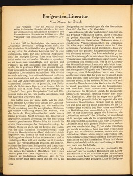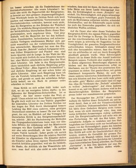 Auf die Dauer aber wäre dieses Verhalten der Emigranten-Kritik den eigenen Fehlern gegenüber fatal für ihr Prestige in Europa. Die Ueberschätzer des rein-literarischen auf Kosten der Lebenswerte mögen ja zeitweilig die Suggestion von der Vorzüglichkeit der gesamten Emigrantenliteratur aufrechthalten können. Schliesslich einmal wird sich aber herausstellen müssen, dass dies Niveau nur ein artifizielles ist und nur durch Kunstgriffe glaubhaft gemacht wurde. Ohne Schwierigkeit könnte ich an dieser Stelle eine Anzahl konkreter Beispiele nennen. Vielleicht aber empfiehlt es sich, in diesen allgemeinen Bemerkungen allgemein zu bleiben und den Emigrationsautoren selbst zu überlassen, aus der Theorie ihre praktischen Konsequenzen zu ziehen. Gut geschriebene, mit gutem Geschmack komponierte Bücher, die auch von einem anderen talentierten Schriftsteller geschrieben sein könnten und dem Leser nicht mehr geben als andre ‘gute’ Bücher, sind relativ (und ich sage das, ohne die Verdienste der ‘Technik’ schmälern zu wollen) ‘bedeutungslos’. Auf etwas Anderes kommt es an, und von diesem Anderen wird in den überschwenglichen Kritiken der Emigrantenpresse leider nur ausnahmsweise gesprochen.