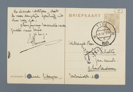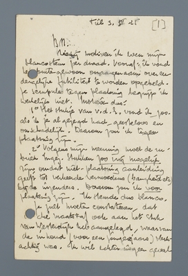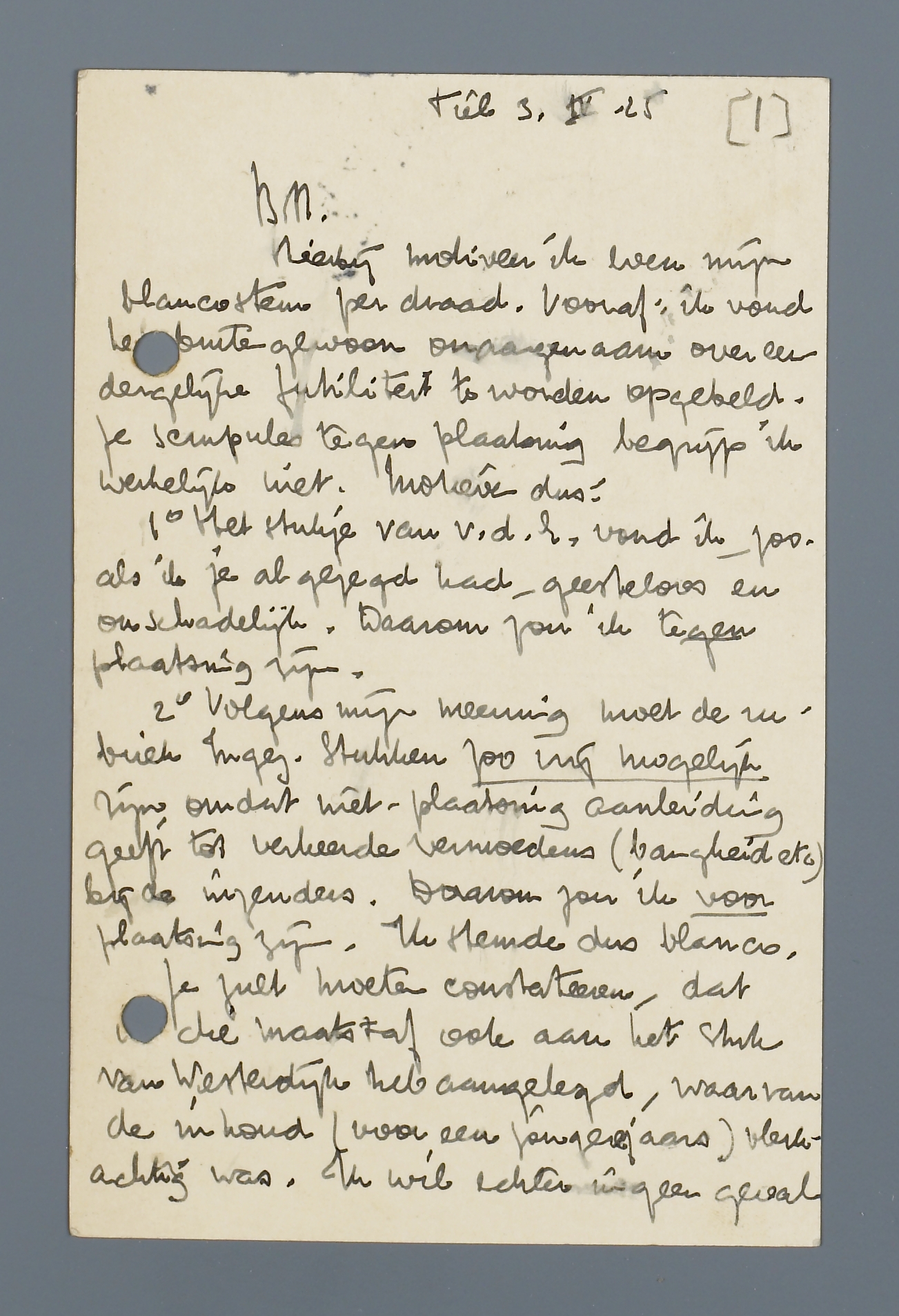 | 1o | Het stukje van v.d.Z. vond ik, zoo als ik je al gezegd had, geesteloos en onschadelijk. Daarom zou ik tegen plaatsing zijn. |