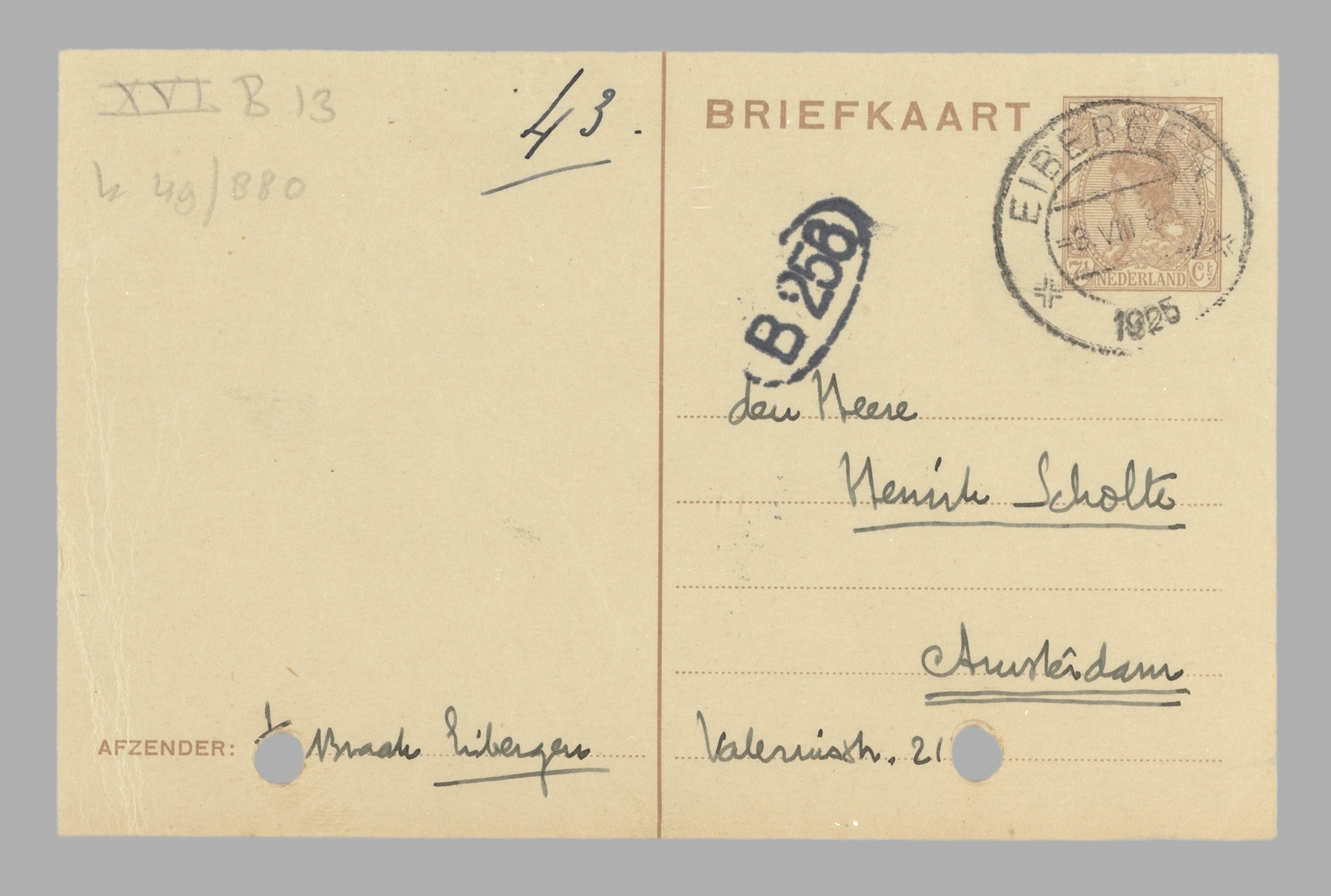 Dank voor je brief; de quaesties daarin behandeld bespreken we dus nader mondeling. Tot Vrijdag ben ik nog in Eibergen, daarna Zutfen. Zaterdagavond Amsterdam.