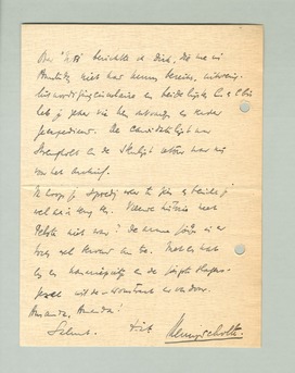 Voor Filmliga heb ik zooveel mogelijk nog in orde gemaakt voor ik wegging. De proeven van [onleesbaar] heb je zeker gekregen. Als ik terug kom ([onleesbaar]) zal ik zien, dat het nummer [onleesbaar]. [Maar zonden wij dezen niet ook al bericht] [onleesbaar]. Zie maar eens en stuur eventueel bericht copie naar Clausen. [onleesbaar.]