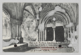 Hier is de beroemde begrafenis der [één woord onleesbaar] van de katten door de ratten in byzantijnsch [be]eldhouw[kunst] op afgebeeld, maar dank zij de [één woord onleesbaar] kaart zie je er net niets van.