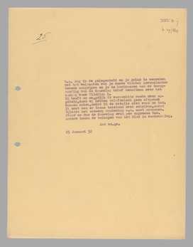 Hij heeft er me, gelijk ik verwachtte reeds over opgebeld, doch wij hebben telefonisch geen afspraak kunnen maken, omdat ik de details niet voor me had. Ik moet hem er thans terstond over schrijven, omdat Zijlstra het ontwerp Donderdag a.s. moet meenemen. Stuur me dus de doorslag even per expresse toe. Anders komen de belangen van het blad in verdrukking.