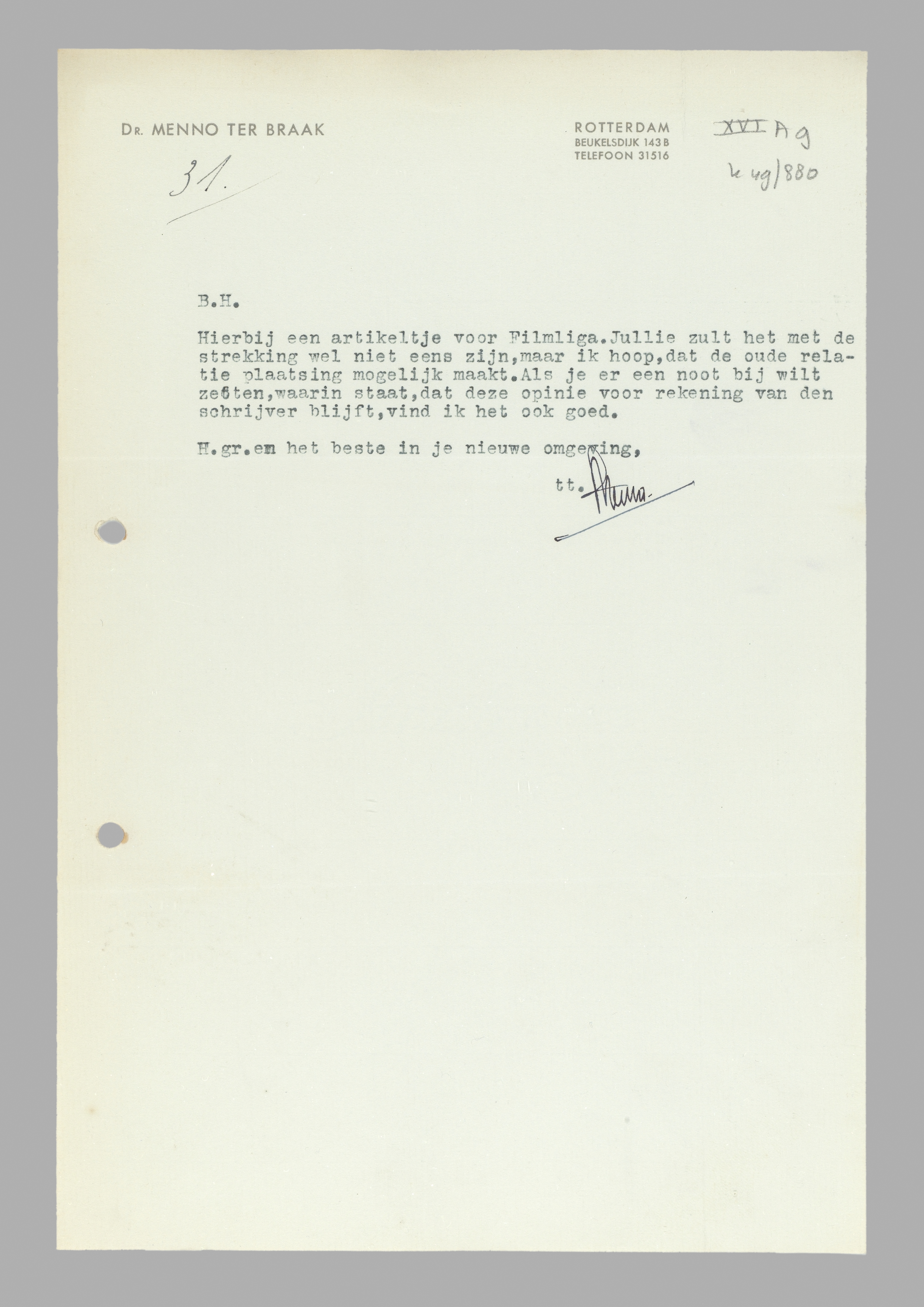 Hierbij een artikeltje voor Filmliga. Jullie zult het met de strekking wel niet eens zijn, maar ik hoop, dat de oude relatie plaatsing mogelijk maakt. Als je er een noot bij wilt zetten, waarin staat, dat deze opinie voor rekening van den schrijver blijft, vind ik het ook goed.