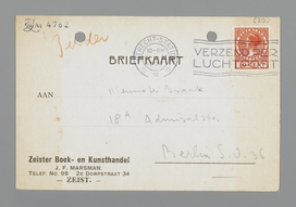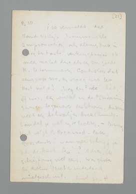 i10 vermeldt dat Kandinsky's ‘Träumerische Improvisation’ als kleurendruk in ‘Sieg der Farbe’ verkrijgbaar is. Ik meen me het ding als een zeer goede K. te herinneren. Controleer dat eens voor me, en vraag wat het kost, wil je? ‘Sieg der Farbe’ hád, of was, een winkel in de Potsdammer Strasse, tegenover der Strom. Anders weet een behoorlijke boek (kunst)-handel je wel in te lichten. - Binnenkort volgt P. Regained. - later ‘Roosvenster’. Wanneer schrijf je over de Anat. Les? Adieu, ik schrijf nog wel eens. Was gister bij Athur: 't ziet er inderdaad mietersch uit.