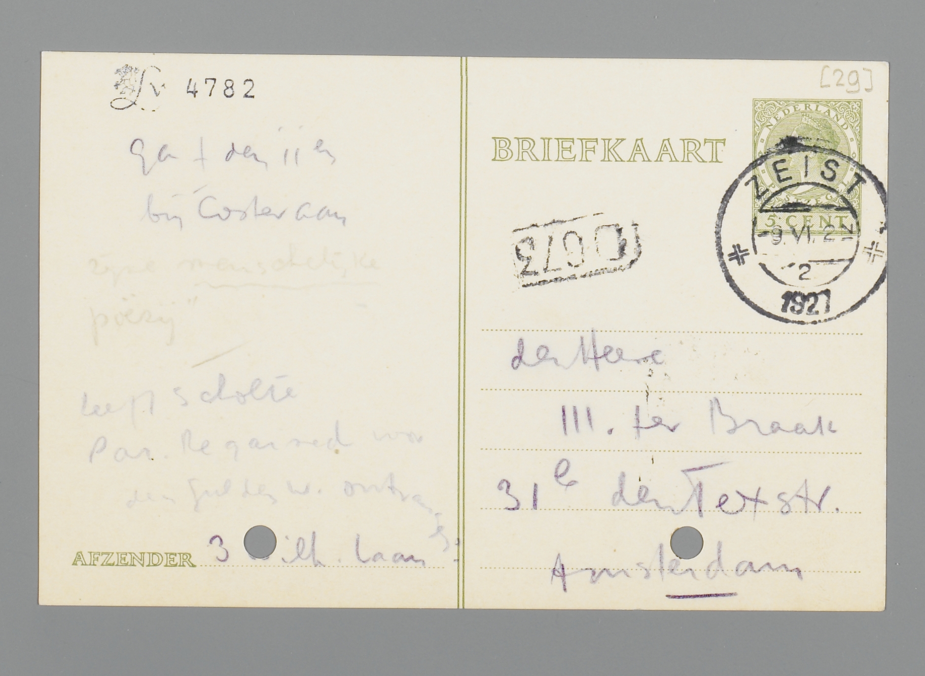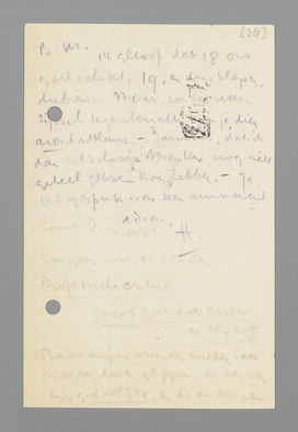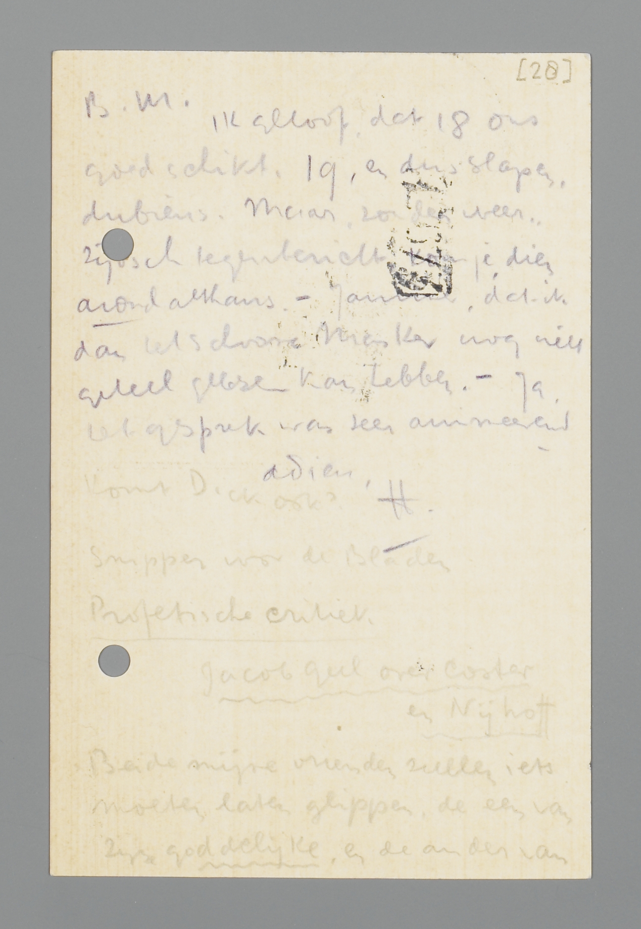 Ik geloof dat 18 ons goed schikt. 19, en dus slapen, dubieus. Maar zonder weerzijdsch tegenbericht kom je dien avond althans. - Jammer, dat ik dan het Schoone Masker nog niet geheel gelezen kan hebben. - Ja, het gesprek was zeer animeerend.