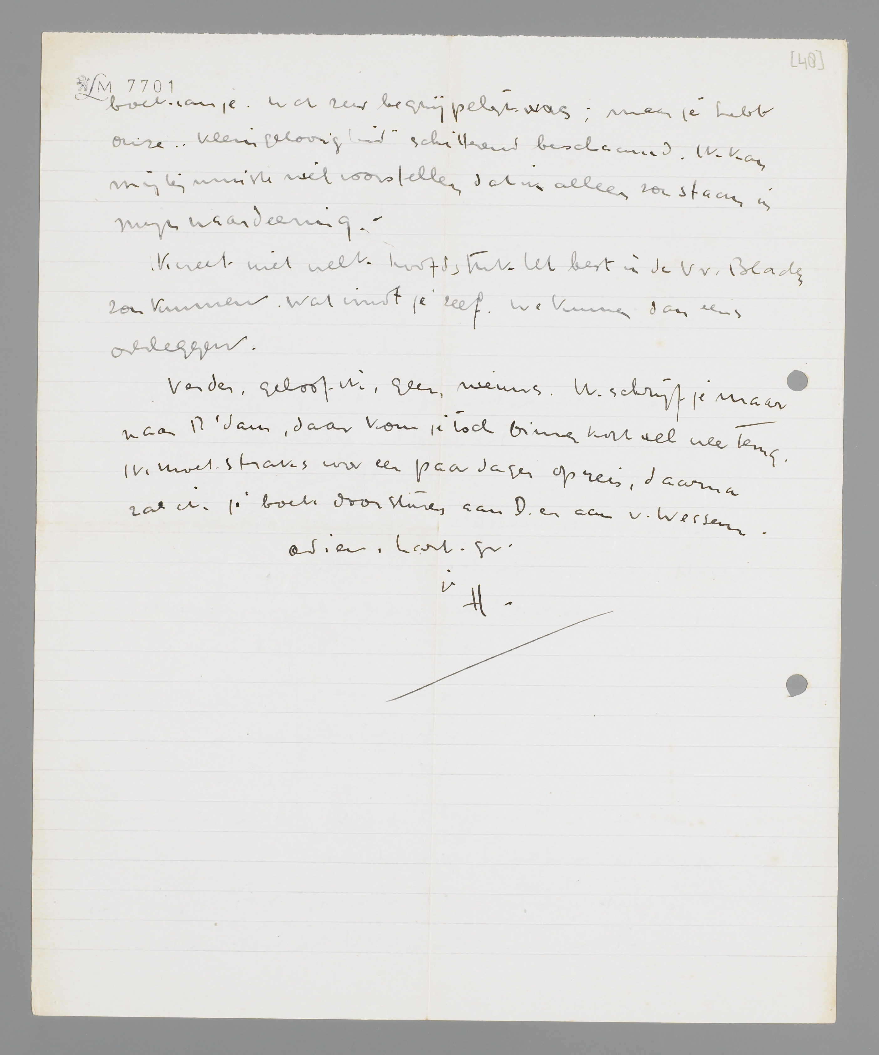 Verder, geloof ik, geen nieuws. Ik schrijf je maar naar R'dam, daar kom je toch binnenkort wel weer terug. Ik moet straks voor een paar dagen op reis, daarna zal ik je boek doorsturen aan D. en aan v.Wessem.