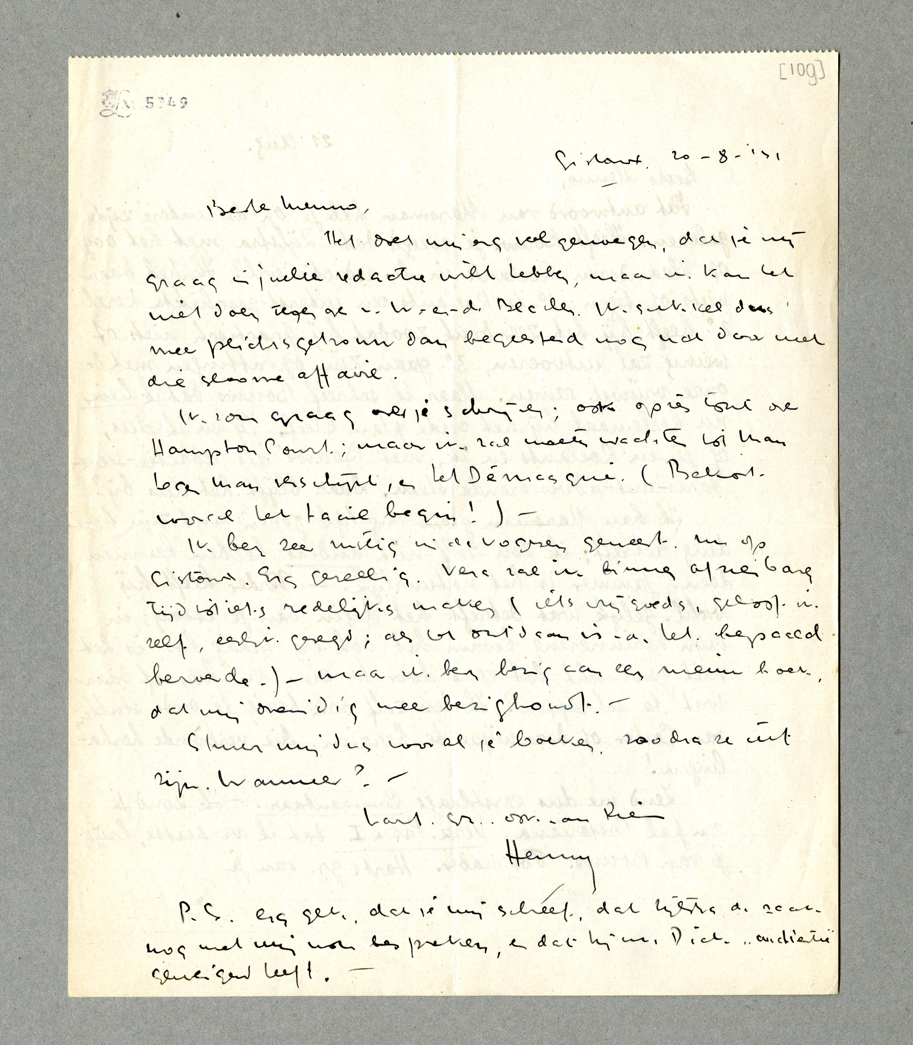 P.S. erg gek, dat je mij schreef, dat Zijlstra [de zaak] nog met mij wou bespreken en dat hij nu Dick 'audiëntie' geweigerd heeft, -