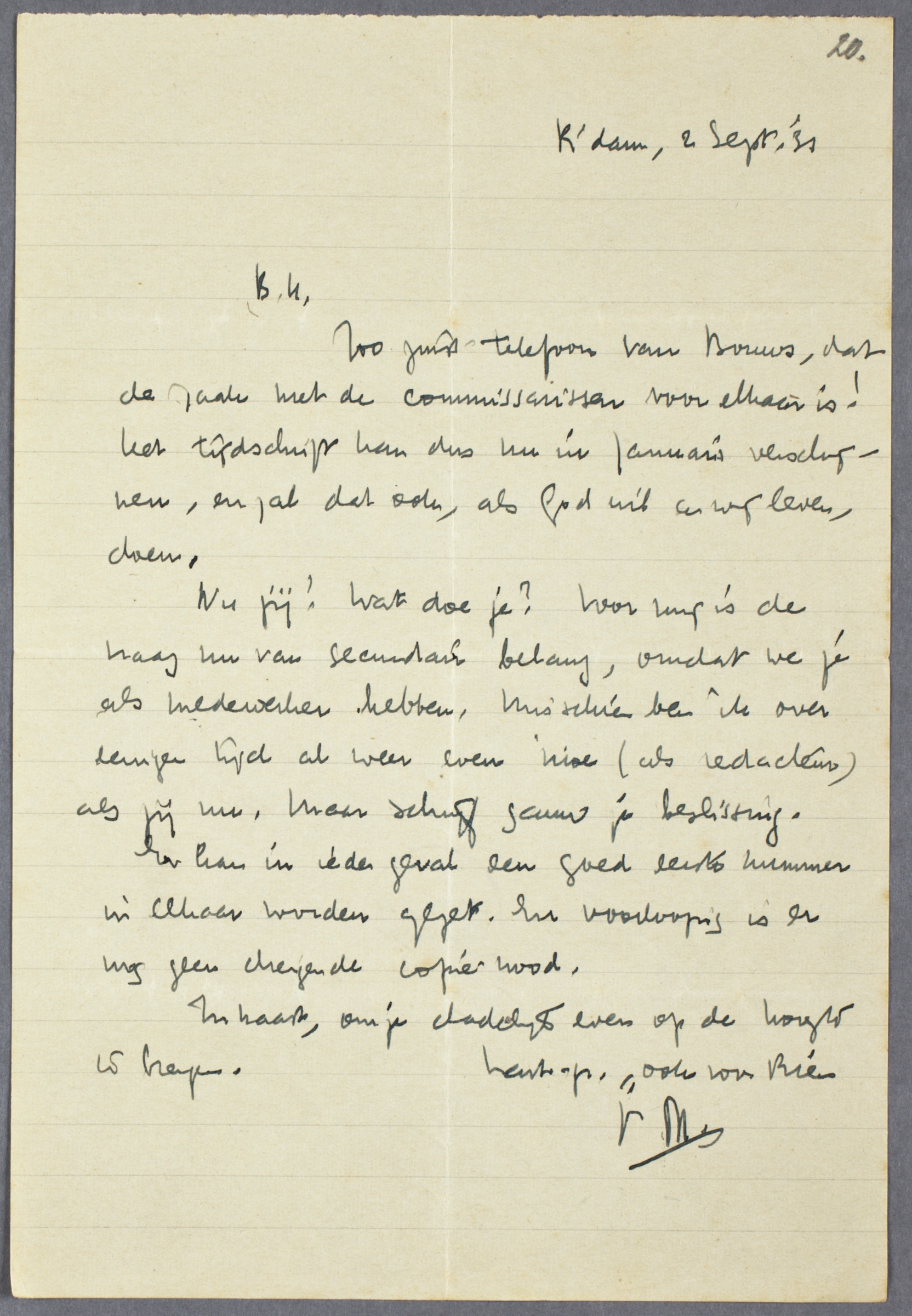 Zoo juist telefoon van Bouws, dat de zaak met de commissarissen voor elkaar is! Het tijdschrift kan dus nu in Januari verschijnen, en zal dat ook, als God wil en wij leven, doen.