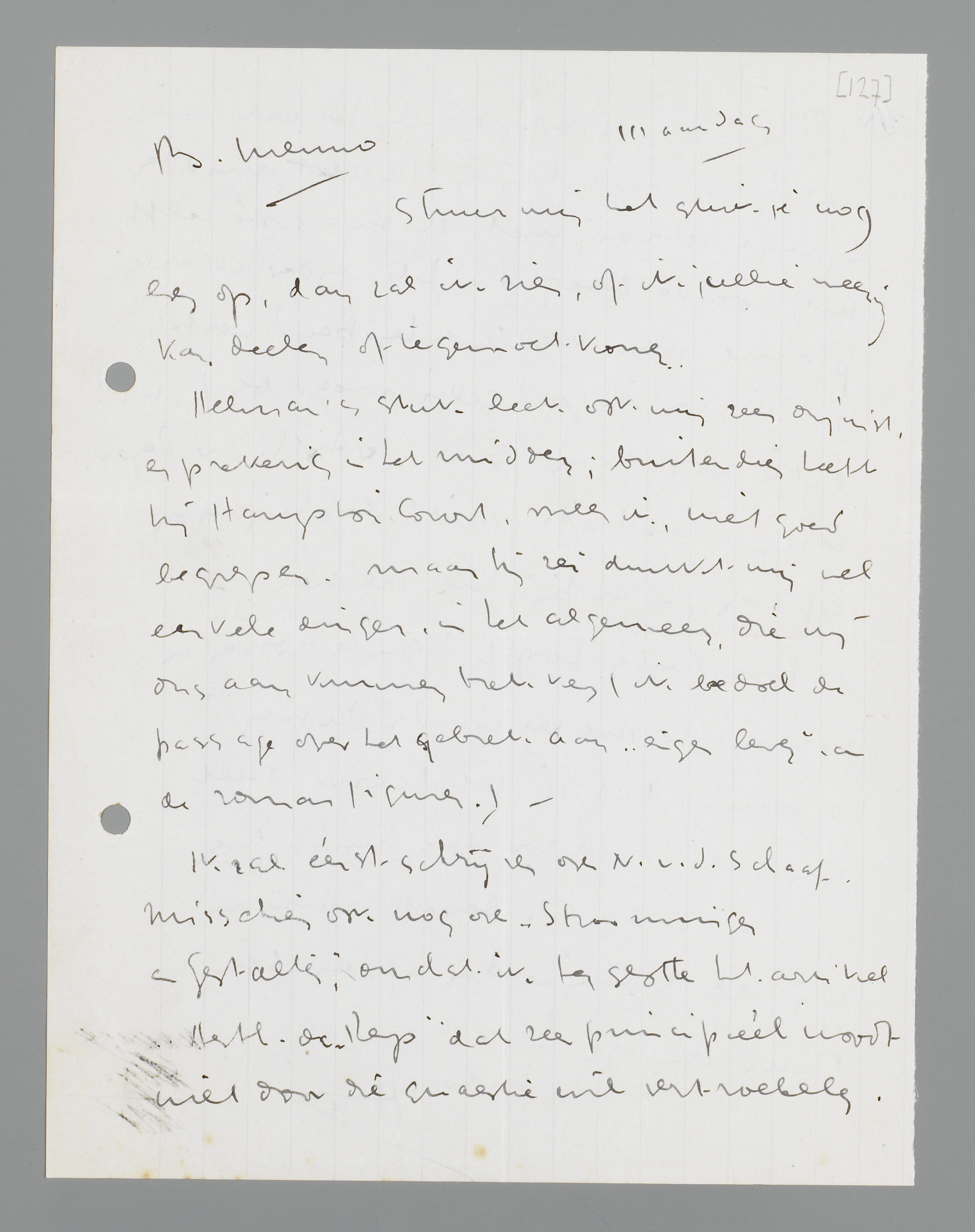 Ik vrees voor de rest, dat ik het artikel niet zoo direct kan schrijven. Ik zit midden in mijn roman, met de zwaarste helft nog voor de boeg, en heb verder allerlei plannen voor kleiner scheppend werk, dat ik, als ik goed gedisponeerd ben, wil laten voorgaan. En ‘der Aesth. der Reporters’ is niet iets dat ik vluchtig kan afdoen. - enfin, ik zal zien. -