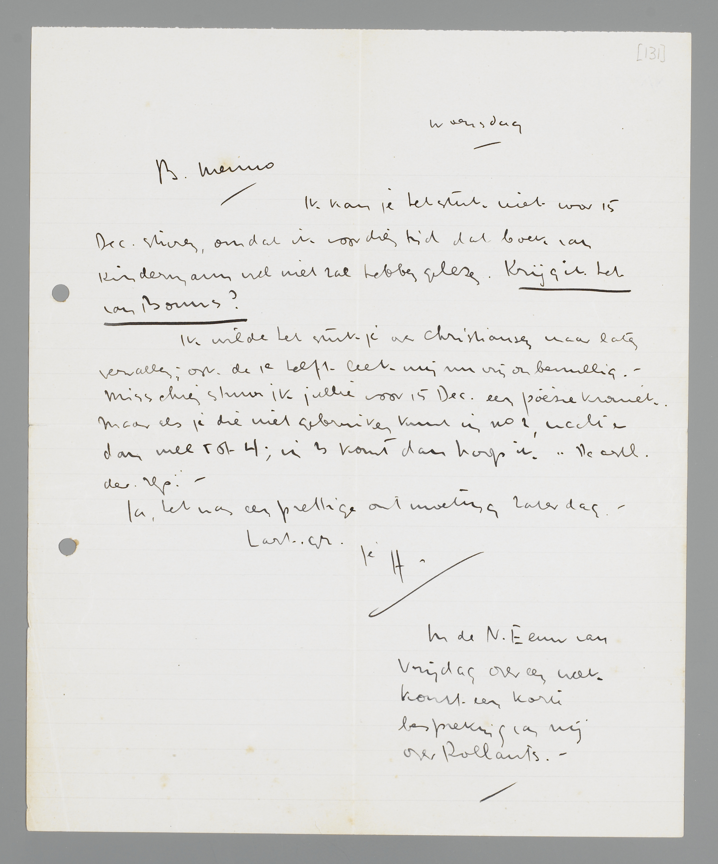 Ik wilde het stukje over Christiansen maar laten vervallen; ook de 1e helft leek mij nu vrij onbenullig. - Misschien stuur ik jullie voor 15 Dec. een poëziekroniek. Maar als je die niet gebruiken kunt in no 2, wacht er dan mee tot 4; in 3 komt dan hoop ik ‘De aesth. der rep.’ -