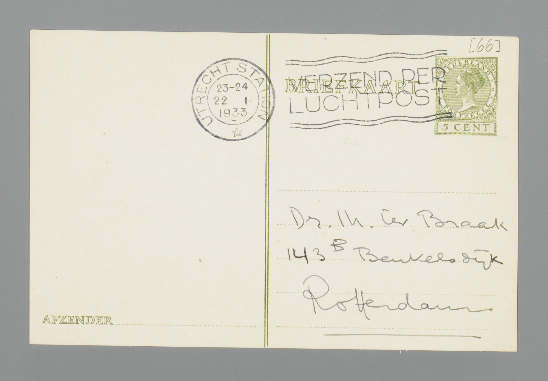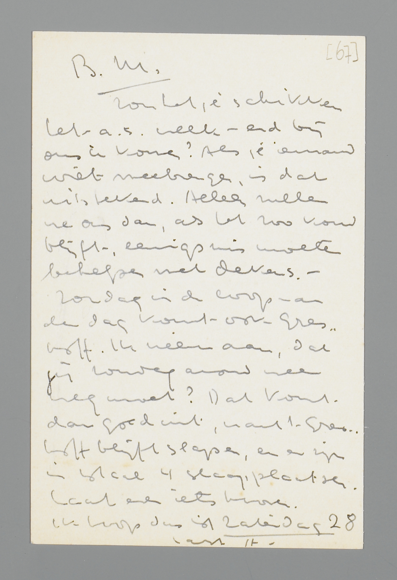 Zou het je schikken het a.s. week-end bij ons te komen? Als je iemand wilt meebrengen is dat uitstekend. Alleen zullen we ons dan, als het zoo koud blijft, eenigszins moeten behelpen met de dekens.-