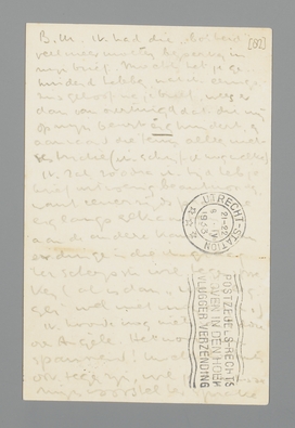 Ik zal zoodra ik tijd heb je brief uitvoerig beantwoorden, want eenerzijds praten we erg langs elkaar heen en aan de andere kant staan er dingen in die ik graag ten scherpste wil tegenspreken (al is dan ‘[weer]leggen’ wel niet mogelijk.)