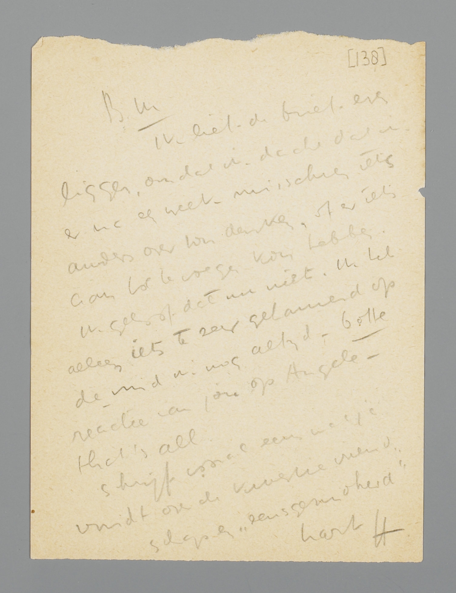 Ik liet de brief even liggen, omdat ik dacht dat ik er na een week misschien iets anders over zou denken, of er iets aan toe te voegen kon hebben. Ik geloof dat nu niet. Ik heb alleen iets te zeer gehamerd op de - vind ik nog altijd - botte reactie van jou op Angèle - that's all.