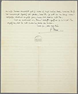 Ik hoop, dat je om mijn navertellerij zult lachen, want je bent het toch niet met me eens, dat ik daarmee iets bewijs. Het essentieele van mijn humor-eeredienst zul je vinden in mijn nieuwe boek, waarvan ik je het manuscript spoedig zal zenden, hoop ik. Je zult me na lezing waarschijnlijk absoluut ongelijk geven, maar dat doet er niet toe.