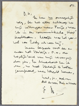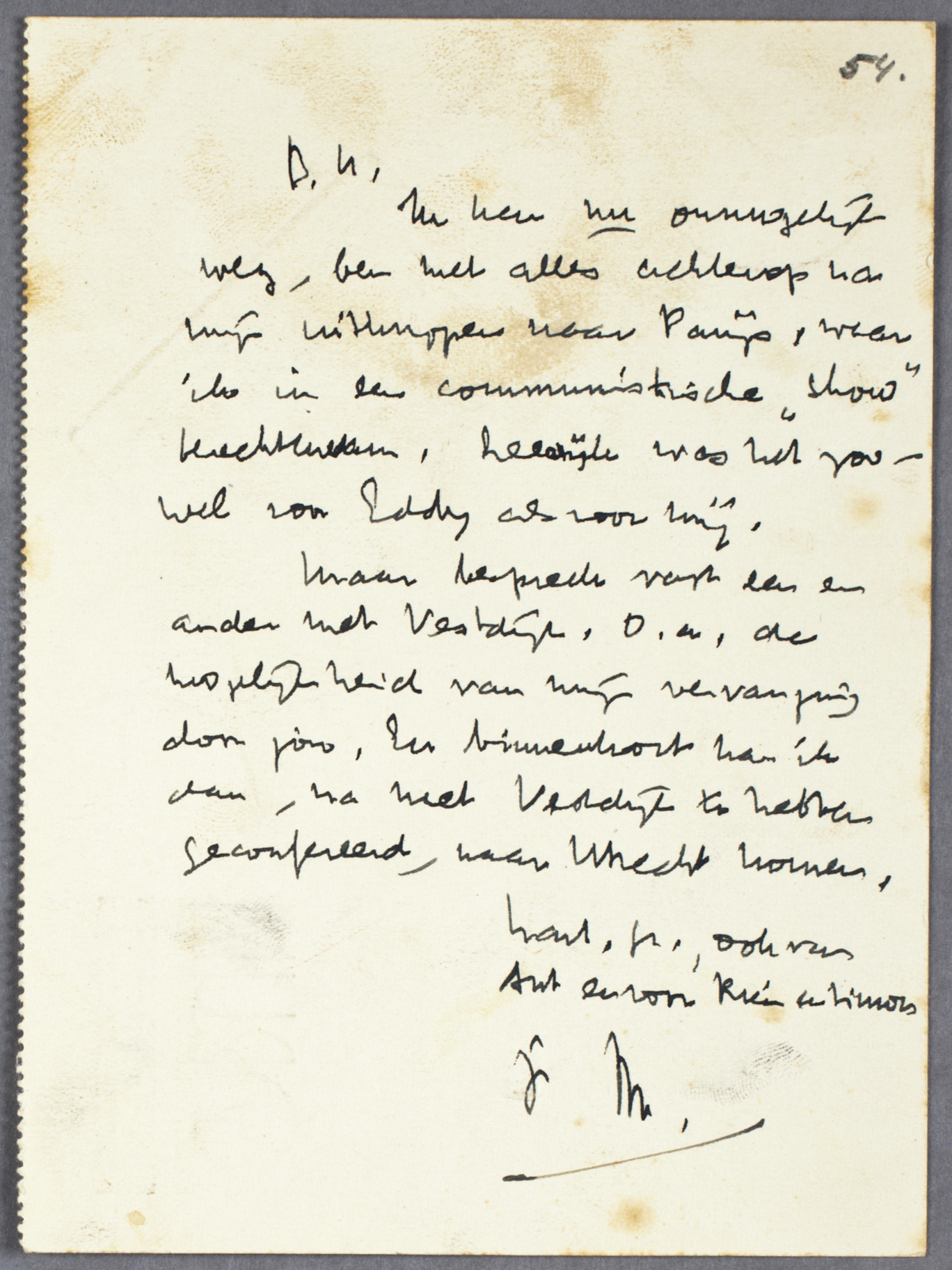 Maar bespreek vast een en ander met Vestdijk. O.a. de mogelijkheid van mijn vervanging door jou. En binnenkort kan ik dan, na met Vestdijk te hebben geconfereerd, naar Utrecht komen.