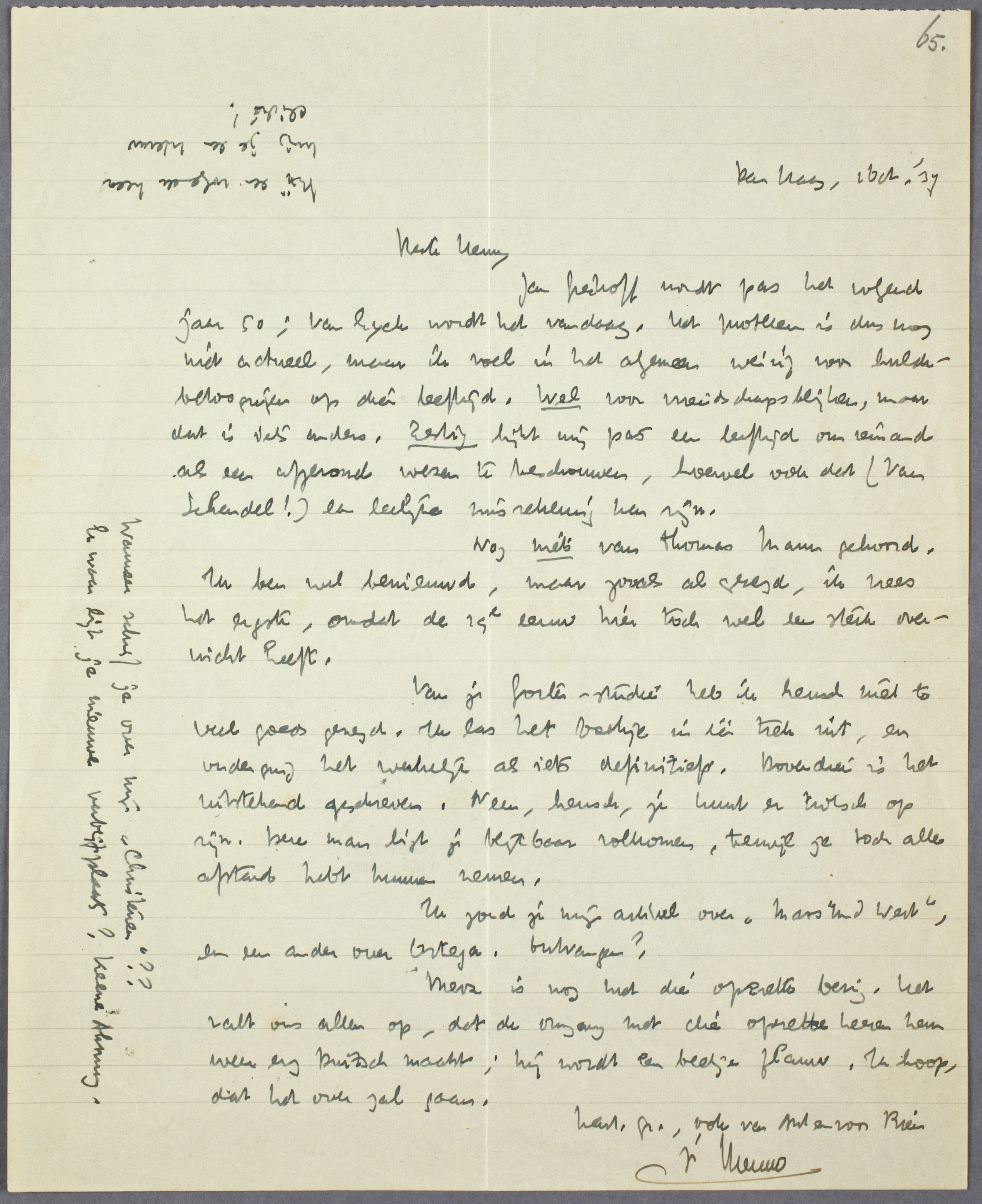 Merz is nog met die operette bezig. Het valt ons allen op, dat de omgang met die operette heeren hem weer erg Duitsch maakt; hij wordt een beetje flauw. Ik hoop, dat het over zal gaan.