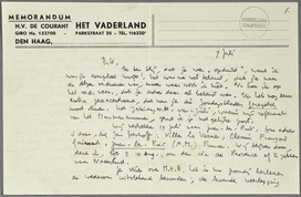 Ik ben blij, dat je weer ‘opduikt’, want ik was je compleet kwijt! Het was me wel bekend, dat je naar de Alpen verdwenen was, maar waar wist ik niet. Nu hoor ik op het red. secr., dat je adres daar al bekend was. Ik heb nog eens extra geaccentueerd, dat men je die Zondagsbladen geregeld moet sturen. Het Zaterdag w.bl. van 2 Juli, waarin mijn referaat van het Marsman nummer, zend ik je met gelijke post.