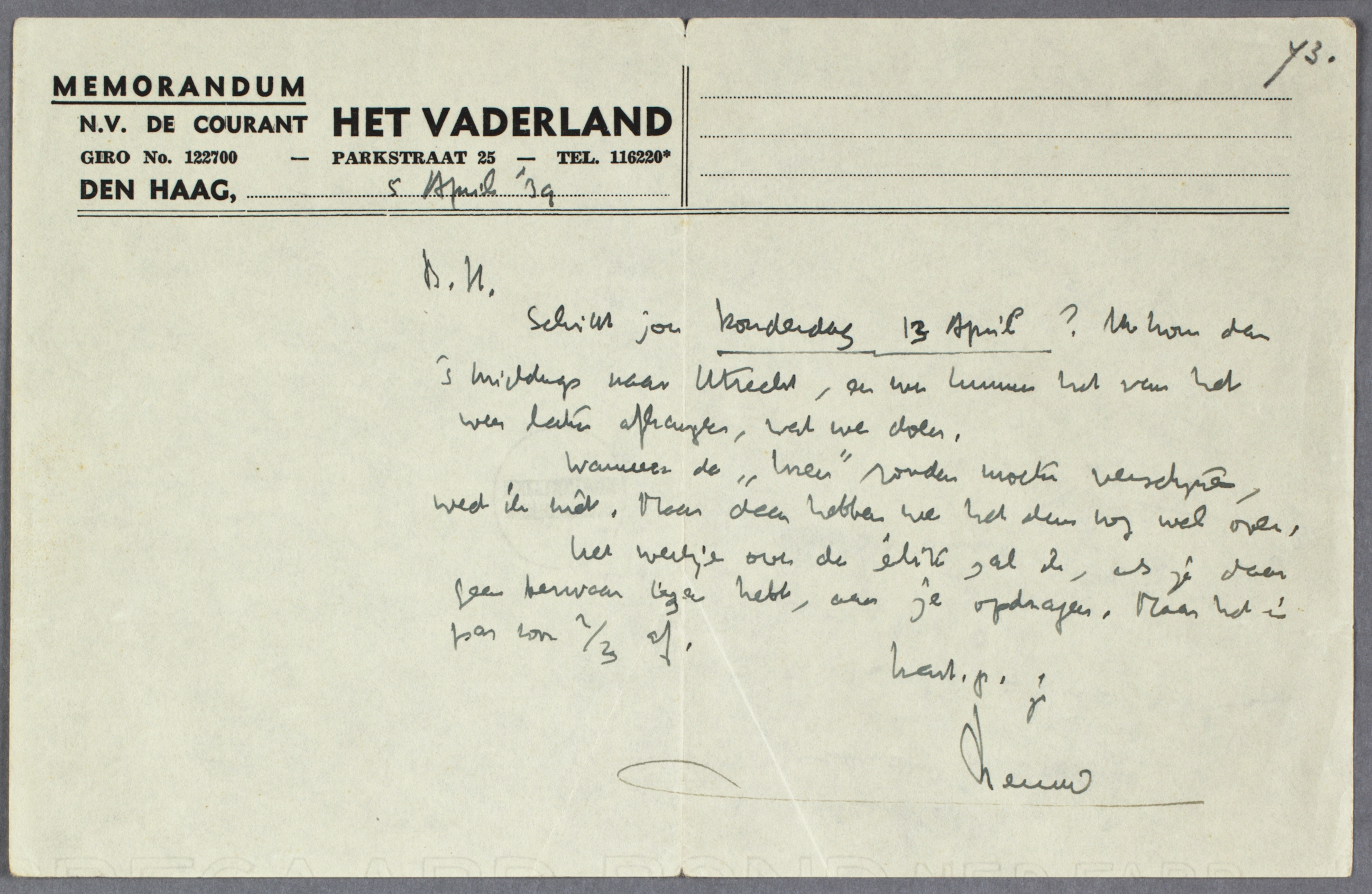 Het werkje over de elite zal ik, als je daar geen bezwaar tegen hebt, aan je opdragen. Maar het is pas voor 2/3 af.