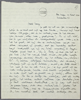 Mijn geschrift over Vestdijk (‘De Duivelskunstenaar’) is eergisteren de deur uitgegaan. Het is iets in den geest van jouw Ter Braak-studie, maar grooter van omvang. Het geheel is ‘gecomponeerd’ uit krantenartikelen en nieuw schrijfsel, à la manière de ‘In Gesprek met de Vorigen’. Dit soort schrijverij is misschien nog het meest geschikt voor tijden als deze; het vergt niet veel concentratie, en je hebt toch het idee, dat je iets doet. Heb je Gomperts ‘Catastrophe der Scholastiek’ gelezen (V.Bl. van Februari)? Dit is het eenige belangrijke over ‘De Nieuwe Elite’ geschreven. Trouwens: ook vrijwel het eenige. De critiek heeft er niet op gereageerd.