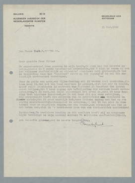 Uw expressebrief kwam zooeven in mijn bezit. Ik stel het ten zeerste op prijs, zooals ik U reeds telefonisch mededeelde, dat U zich in dezen op een zoo volkomen onafhankelijk en objectief standpunt hebt geplaatst. Ik had de bespreking voor het ‘incident’ reeds op een pagina na af en zal die natuurlijk onveranderd voordragen.