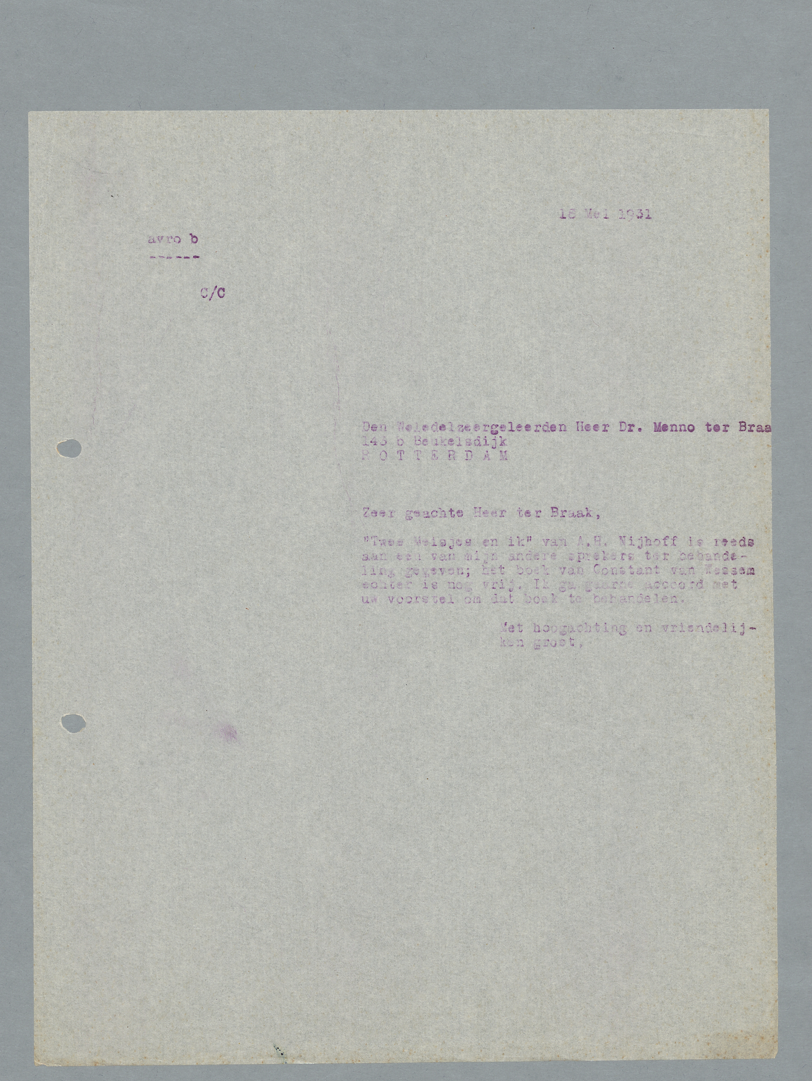 Den weledelzeergeleerden Heer Dr. Menno ter Braak
