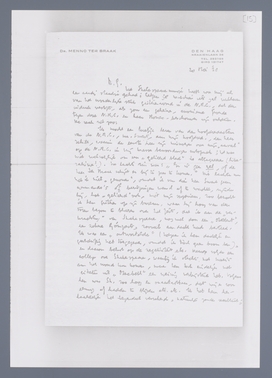 Ik mocht een briefje lezen van de hoofdredacteur van de N.R.C., mr. Swart, aan mijn hoofdred., den heer Schilt, waarin de eerste heer zijn misnoegen over mijn ‘aanval’ op de N.R.C. in vrij krasse bewoordingen uitsprak; het was niet welvoeglijk om een ‘gelieerd blad’ te attaqueeren (liberalisme!). De laatste zin was: ‘Er is geen rel, of de heer ter Braak schijnt er bij te pas te komen.’ Dit laatste nu heb ik niet ‘genomen’, omdat ik van dien heer Swart geen commando's of berispingen wensch af te wachten, [zijnde] hij, hoe ‘gelieerd’ ook, niet mijn superieur. Zoo bezocht ik hem gisteren op zijn bureau, waar hij hoog van den toren begon te blazen over het feit, dat ik aan de ‘verkrachting’ van Shakespeare, nog wel door een ‘stedent’, een zekere Gómperts, zooveel aandacht had besteed. Ik was een ‘ontwortelde’ (hetgeen ik hem dadelijk en geestdriftig heb toegegeven, omdat ik tòch geen boom ben), en daarom belust ben op de negativiteit etc. Daarop volgde een college over Shakespeare, waarbij ik slechts met moeite aan het woord kon komen, maar hem toch eindelijk met citaten uit ‘Macbeth’ een weinig verbijsterd heb. Volgens hem was Sh. zoo hoog en onaantastbaar, dat wij er voor eeuwig af hadden te blijven etc.etc. Ik heb hem herhaaldelijk het tegendeel verzekerd, natuurlijk zonder resultaat, alleen ‘zou hij er toch eens over nadenken, over dat wat u over Macbeth zegt’. Tenslotte nam hij het woord ‘rel’ terug, waarom het mij te doen was. Dit alles werd begeleid door het gekuch van zijn draadharige Terrier op den achtergrond. Hij zelf, volkomen nuchter, maakte op mij soms den indruk van geborreld te hebben, als hij over Sh. sprak. Enfin, 't is een fatsoenlijke man, van ‘measure, time and place’.