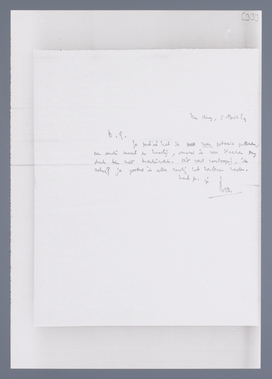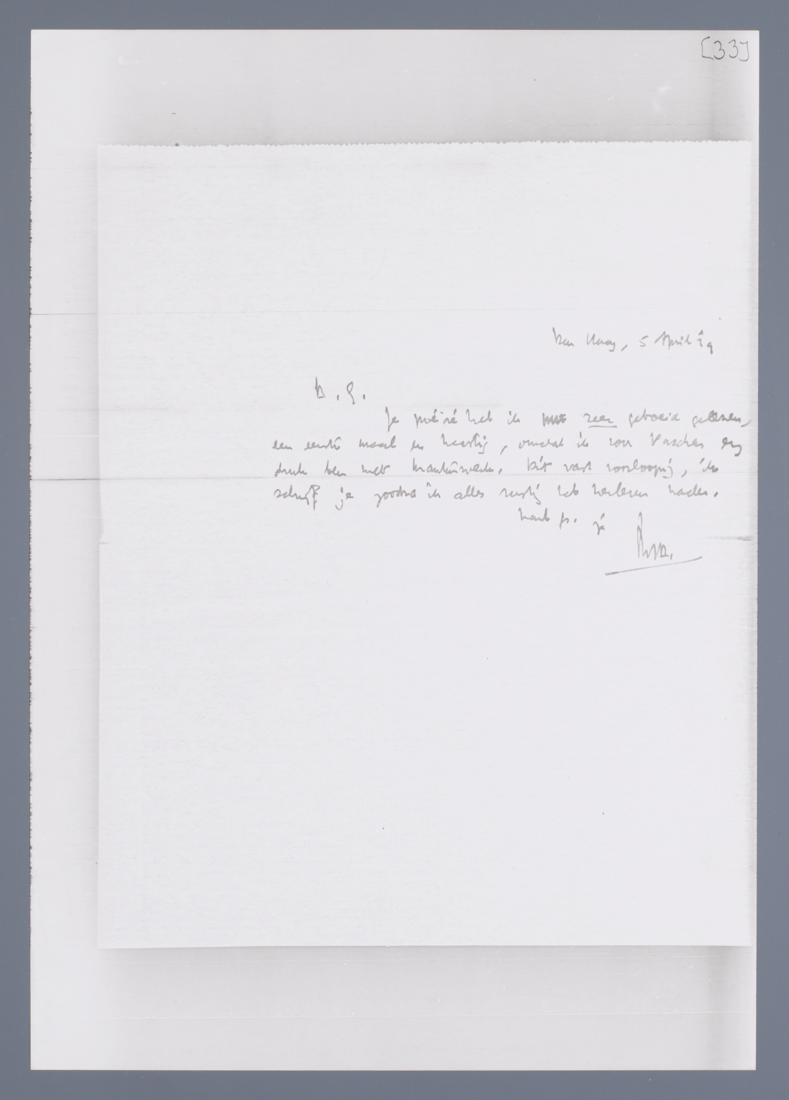 Je poëzie heb ik zeer geboeid gelezen, een eerste maal en haastig, omdat ik voor Paschen erg druk ben met krantenwerk. Dit vast voorloopig, ik schrijf je zoodra ik alles rustig heb herlezen nader.
