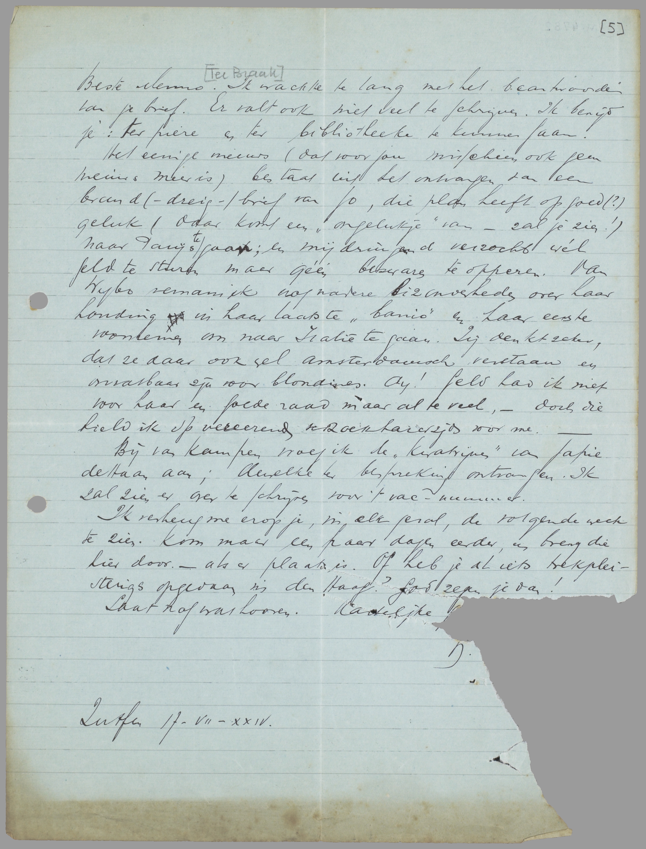Ik wachtte te lang met het beantwoorden van je brief. Er valt ook niet veel te schrijven. Ik benijd je: ter piere en ter bibliotheeke te kunnen gaan.