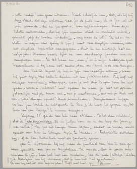 Ook tot mij richtte zich onze vriendin Jo Hoff met een ‘bede’ (in den middeleeuwsch concreten zin). Wat heeft zij in haar laatste ‘banio’ uitgevoerd? Enfin, Parijs is zooals de heer Campert mij schrijft, voor haar ‘de weg naar de hel’. De brief bevatte n.l. Jan's adres als bodemhooge put voor de vele binnenvloeiende gelden. Ik was dus zoo vrij bij hem te informeeren, wat de combinatie Vorstman C Alberts C Hoff in de ‘rotte radijs’ wou gaan uitvoeren. Voorts schreef ik hem, dat, als hij mij borg stond, dat deze oplossing voor Jo de juiste was, ik de ƒ 10 wel uit mijn armoede, die nu zeer groot is, wou bijeenschrapen. Maar deze Pilatus antwoordde, dat hij zijn handen totaal in onschuld wiesch, gebruikte zelfs de sombere uitdrukking ‘weg naar de hel’. Ik heb nu besloten in dezen eens gierig te zijn; want voor dergelijke waanzin, weer met dezelfde naieveteit aangegrepen, sluit ik nu eindelijk hart en vestjeszak. Marinus Snoek lijkt me voor dusdanige fondsen meer de aangewezen man. Ik heb haar nu ‘door’, al is mijn medelijden groot. Waarschuwen is bij haar niets anders, dan een illusie in de war brengen.